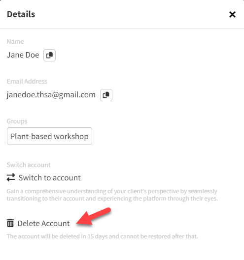 For a test client, the account and all the client details, forms, trackers, and handouts associated will be deleted immediately.