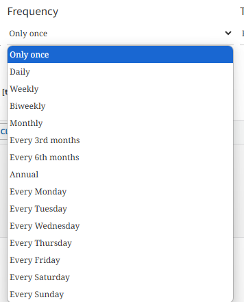 Select the Frequency of this reminder (e.g. Only once, Daily, Weekly, etc)