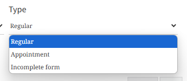 Select the reminder Type (e.g. Regular, Appointment, Incomplete form)