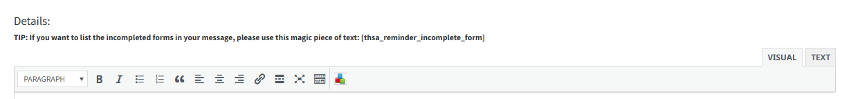 Next, complete the Details of the reminder (e.g. I am looking forward to our session this afternoon at 3 pm.) Be sure to click the tab> ‘Visual’ to see the edit options