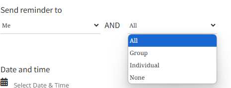 If you select Group, search for the group which you want to send the reminder to by entering the first 3 characters in the search bar