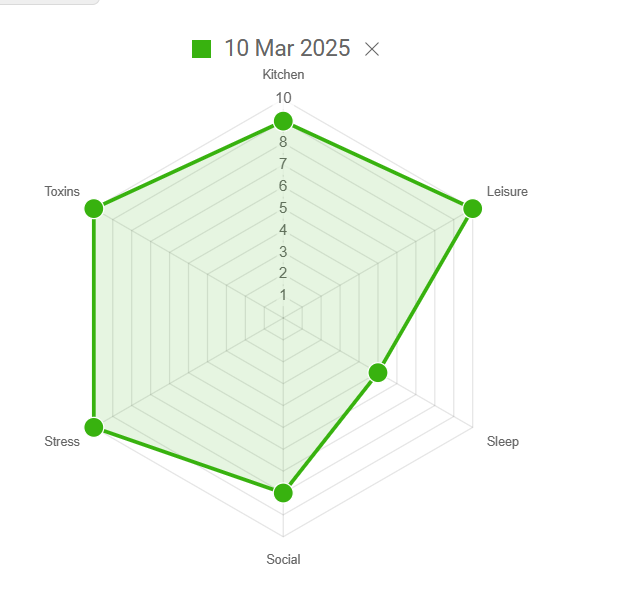 When your client has completed the form, you will then notice on your CLIENT DASHBOARD CONTROL page a spider diagram showing the results of their Lifestyle Self-Assessment.