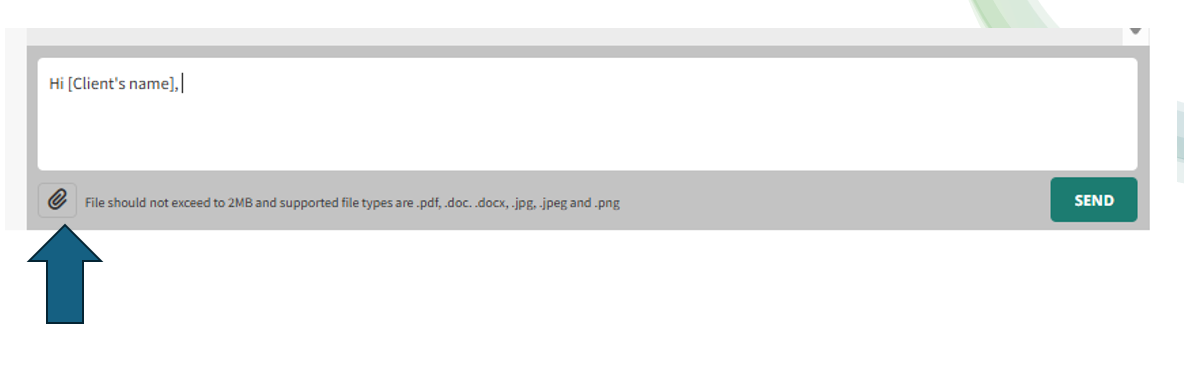 To attach a file to your message, click the paperclip icon.