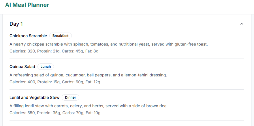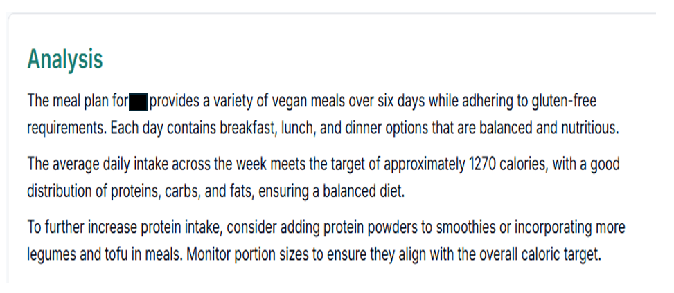 The AI Sample Meal Planner is a cutting-edge tool designed to create tailored meal plans for your clients. We provide personalised meal plans that promote optional health and wellness by considering specific dietary preferences, allergies, and restrictions.