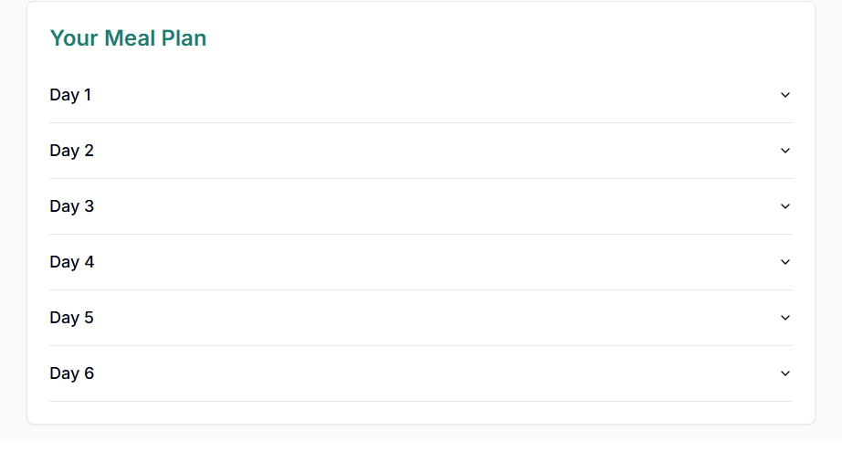 Click the dropdown arrow to see the meal plan for each day: