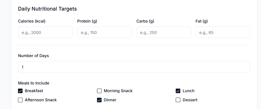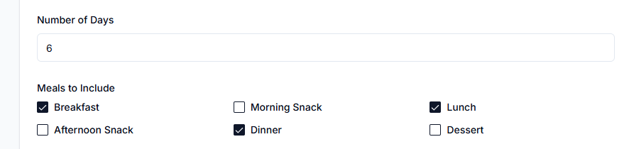 Step 3: Specify the number of days and meals to include: