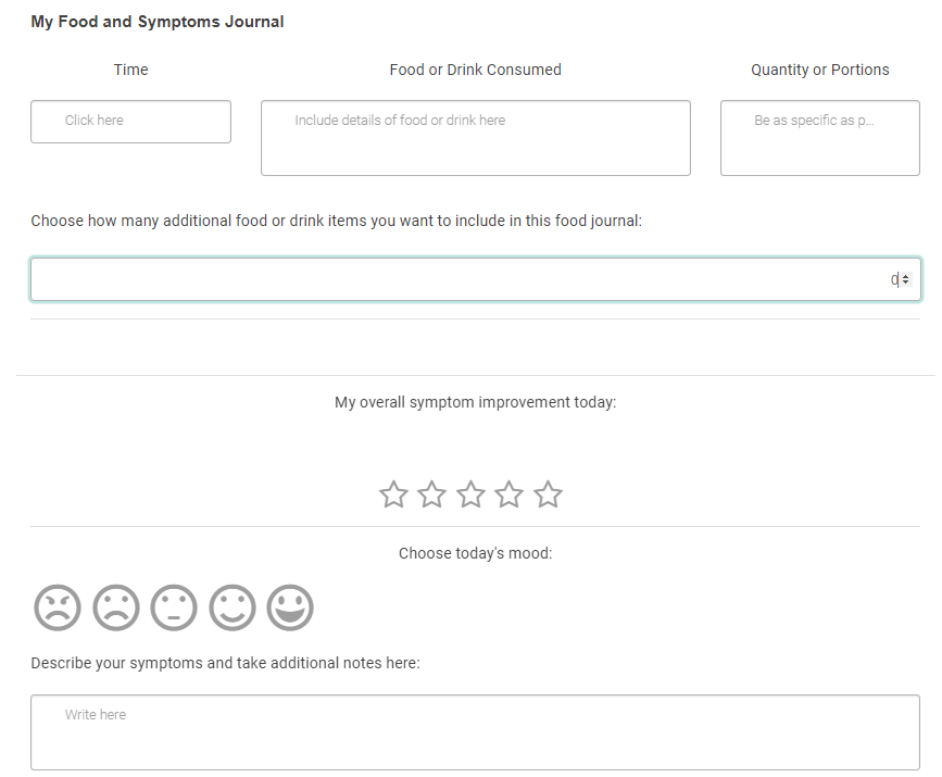 For example, a food journal allows clients to note what they eat after each meal. Similarly, a daily symptoms tracker enables clients to log any symptoms or describe how they feel each day.