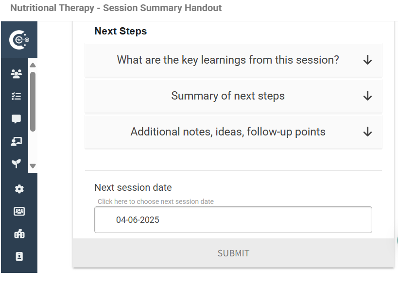 You can use handouts to add notes, introduce new strategies, and highlight crucial follow-up points. This ensures clients stay on track and progress effectively. You have the flexibility to either send blank handouts for clients to complete or fill them out yourself before sending, depending on the client's needs and your workflow.