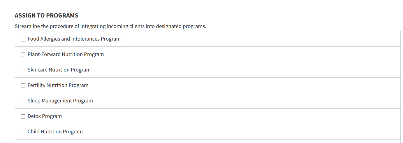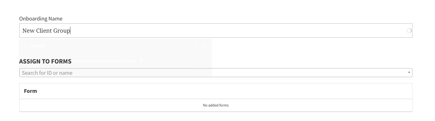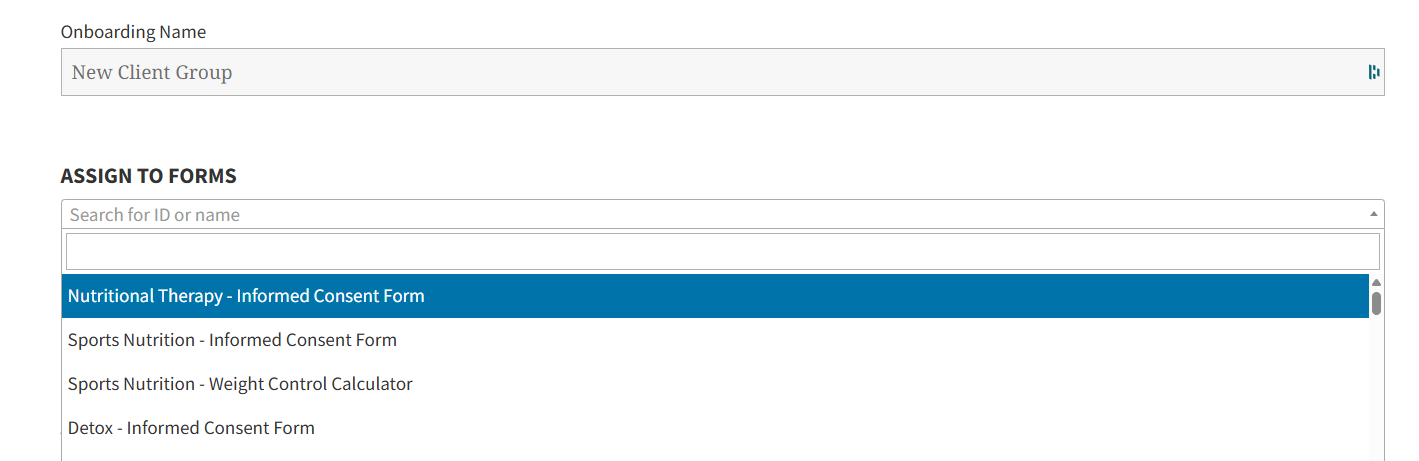 Select the forms you want to assign to your onboarding. You can type in the specific forms you’d like your client to accomplish.
